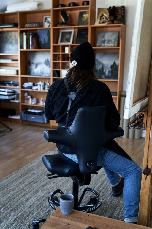 Wie wir uns nachts ganz von selbst drehen, tut auch tagsüber ein Haltungswechsel gut. Der Capisco lädt dazu ein, sich seitlich hinzusetzen. Damit keine Seite zu kurz kommt.